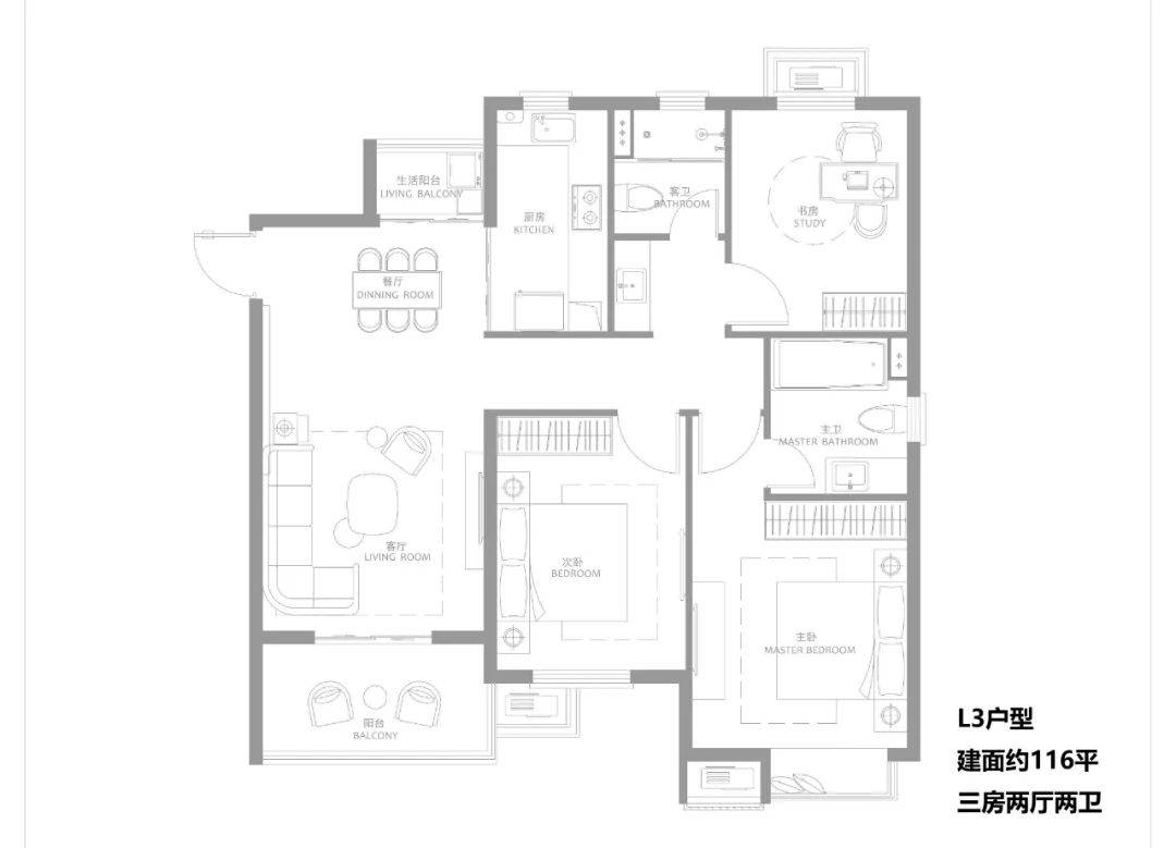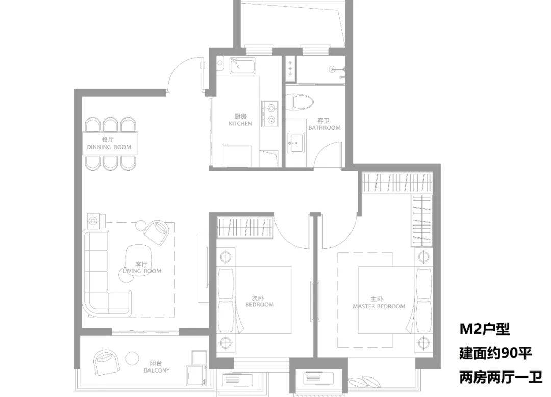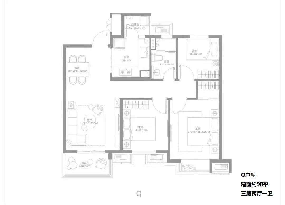 预售户型:90㎡/2房2厅1卫、98/99㎡/3房2厅1卫、116/125㎡/3房2厅2卫(以上面积为预测建面)