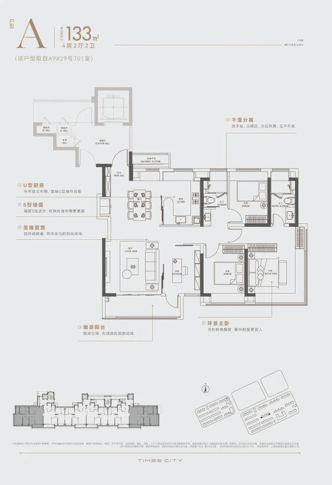 华润置地时代之城高层产品将百平上下的改善户型做出了轻奢级的居住体验,把约133㎡的改善四房做出了豪宅的尺度感。