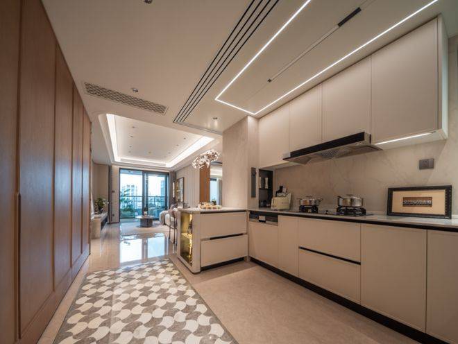 通过S墙的设计,既优化了餐厨动线,同时也增大了厨房的作业面,让整体空间得到进一步合理利用。