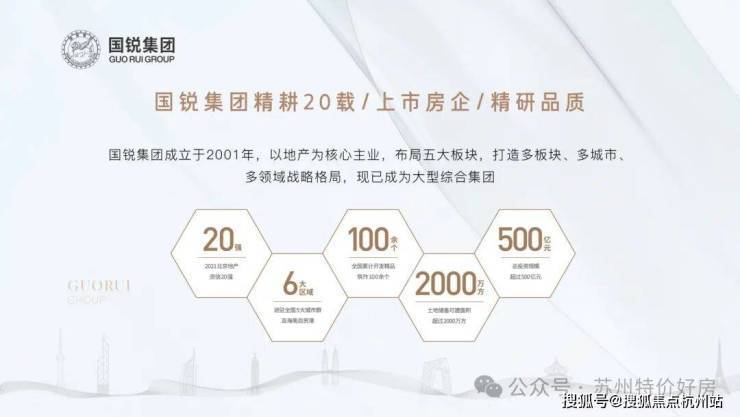 国锐集团成立于2001年,以地产为核心主业,布局五大板块,打造多板块、多城市、多领域战略格局,现已成为大型综合集团。截止目前国锐集团已经布局国内6大区域,截至目前,荣获2021年北京地产资信20强、全国累计开发项目100多个、总资产投资规模约500亿、土地储备可建筑面积超过2000万方。