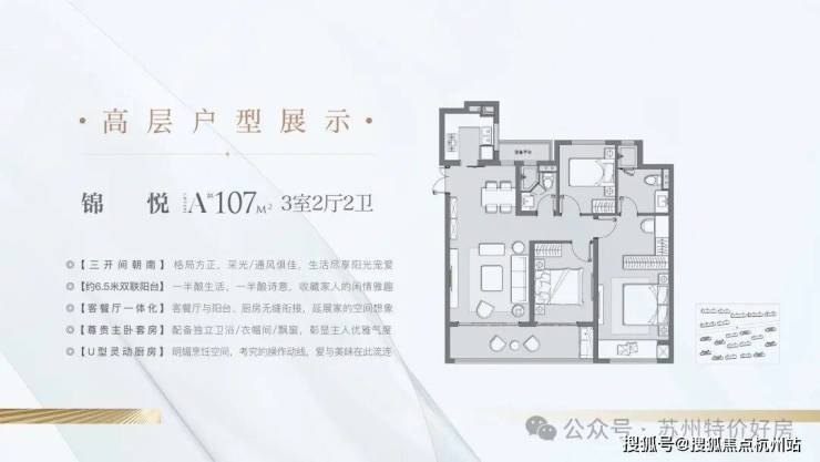 锦悦 高层 107㎡ 户型:三室两厅两卫