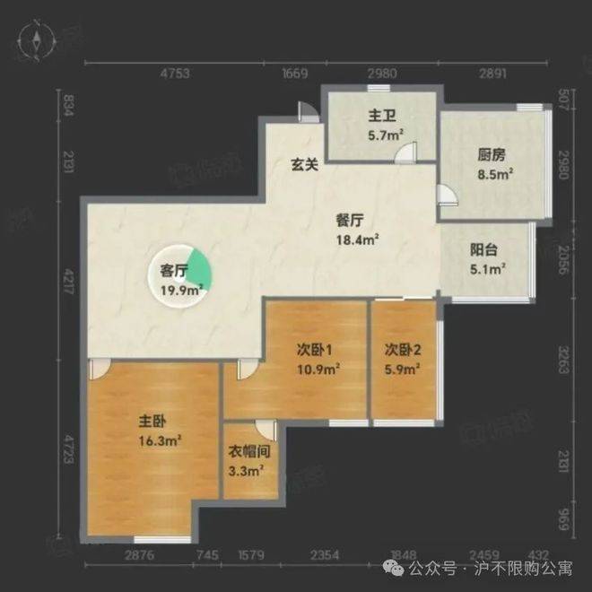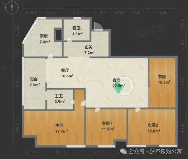 面积117.19平户型:精致全明—3房2厅1厨1卫1阳台