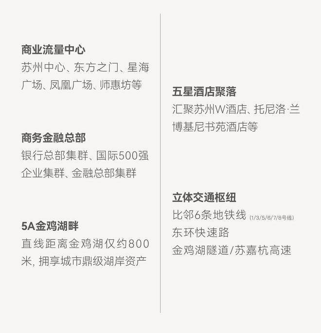 稀缺性:湖西CBD核心地段,190㎡起步的纯粹改善圈层,兼具金鸡湖景观和城市地标视野。