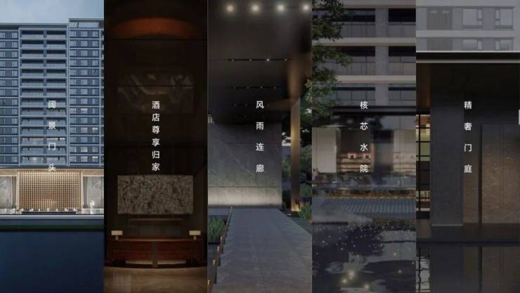 以“阔景门头-酒店尊享归家-风雨连廊-核芯水院-精奢门庭”五大场景,联动“归家-停泊-过廊-观园-入户”五进式归家礼序,各个空间相对独立且互不干扰,清晰流畅的动线,起承转合,层层递进,打造无以复加的尊崇归家体验。
