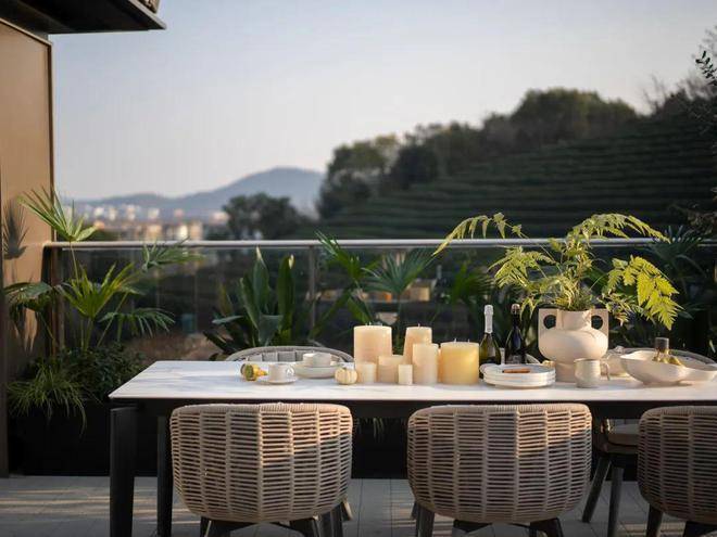 为满足主人一家多种生活场景需求,餐厨空间设计成开放式餐厅以及吧台,客厅空间划分出茶室和会客区,适合家庭聚会。面向庭院,远观茶山,是时候放下手机,全身心与好友和美食为伴,把酒言欢了。