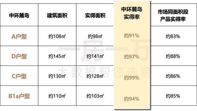 而中环麓岛通过精准的户型优化与空间拓展设计,实现了实得率的全面突破: