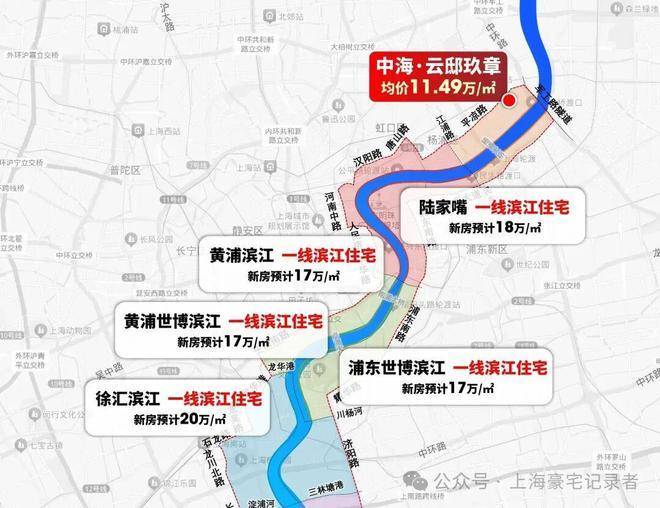 相较于同级别内环滨江段新盘价格梯度,黄浦滨江17万+/㎡、徐汇滨江20万+/㎡,中海·云邸当前均价11.49万/㎡的价格存在不小的优势。