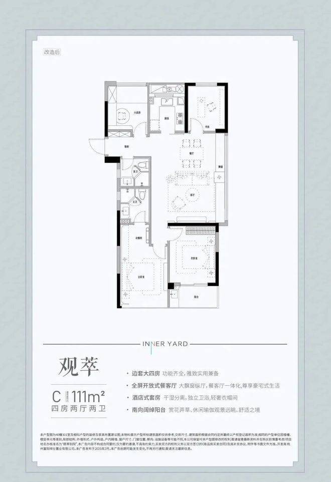 建面约111㎡竟然做到了四房!比市面上主流四房面积少了10多个㎡,却丝毫不输尺度。