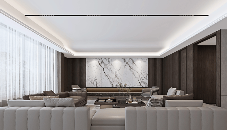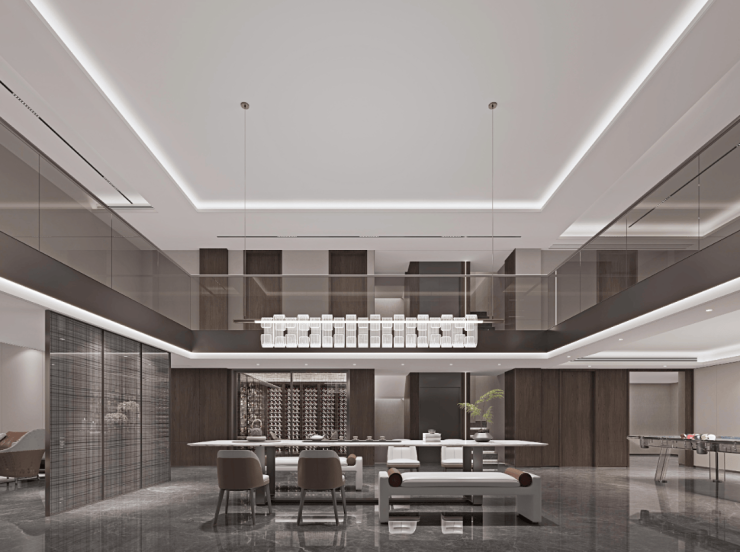 近13米南向面宽和全玻璃立面,立体环幕视野收纳四季光影,横厅设计兼容会客、宴饮、收藏……一线公园景观成为动态背景。