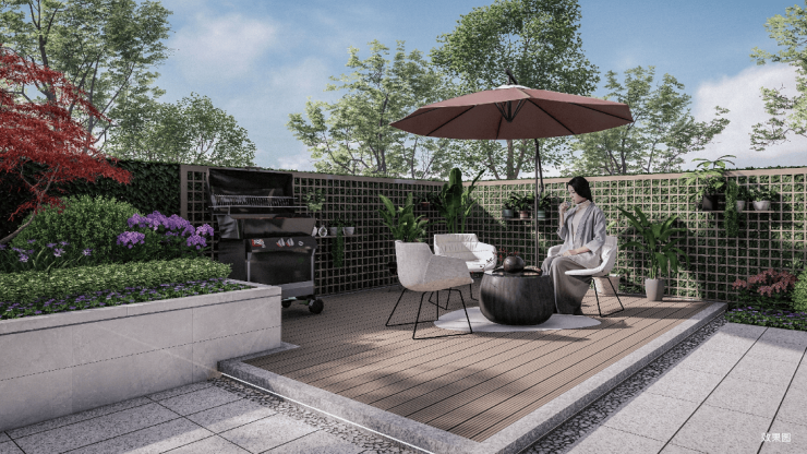 南向景观庭院(与城市公园无界延展,在这里休闲、运动、家庭聚会都是不错的选择)