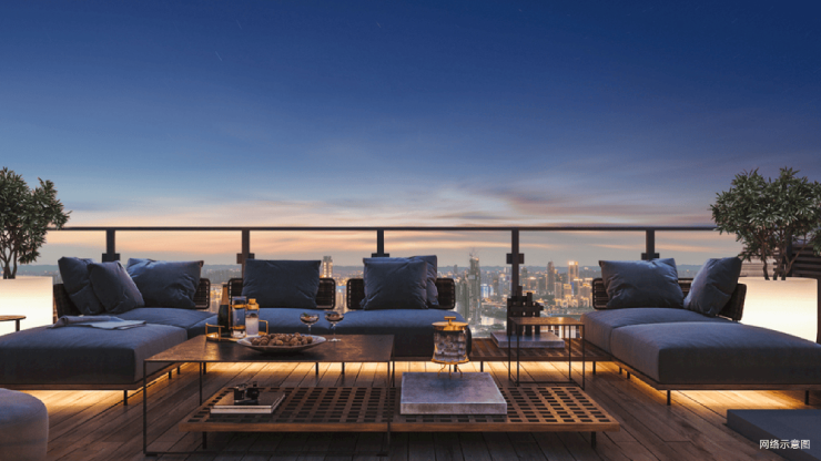 屋顶有专属的空中花园,这里不仅可定制专属观星台,还可以是私人酒廊、茶室和烧烤场所。