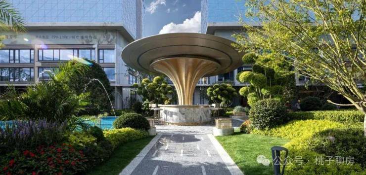 棠悦芳华轩的景观灵感来自著名珠宝品牌CHAUMET,以“繁花造型珠宝”为设计理念,将大胆、华丽、创新于景观之中,形成特有的珠宝风格景观设计系统。