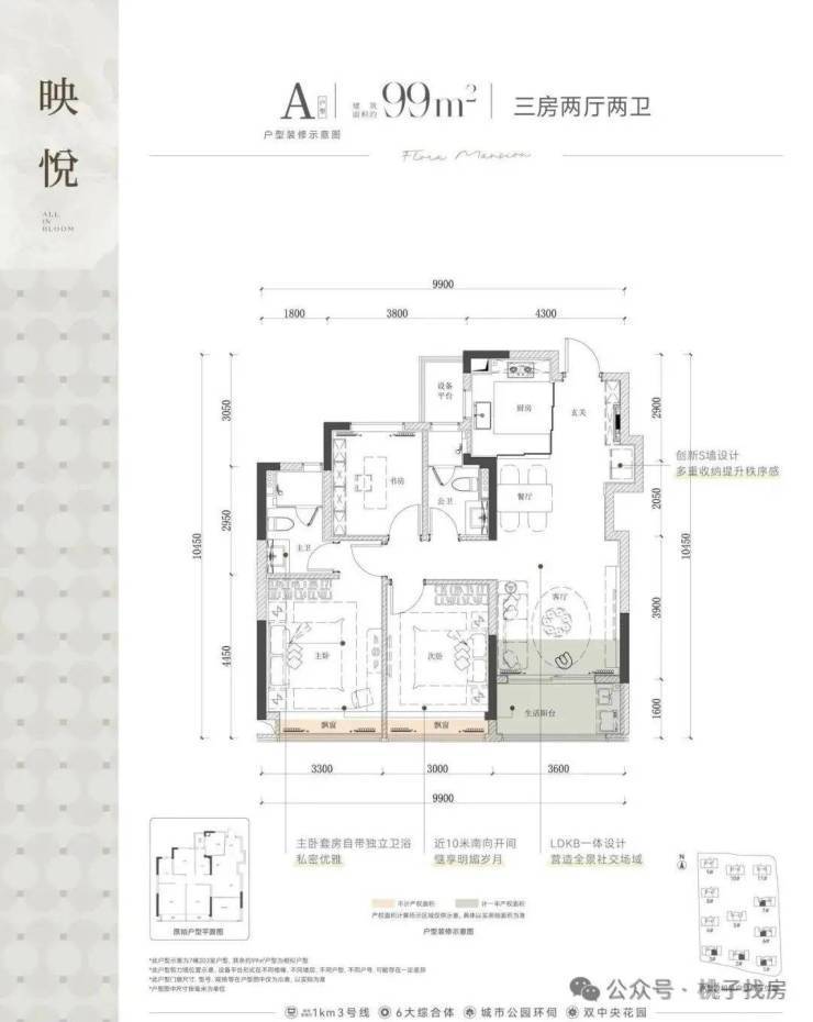 户型:建面约99-139㎡三至四房,得房率超90%,部分户型四开间朝南45