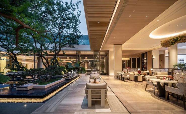 酒店式入户门庭+棠境主题度假园林+下沉式高定会所+下沉庭院+架空层泛会所+户型全面革新+科技系统,打造高颜值、满配置的高定住宅!