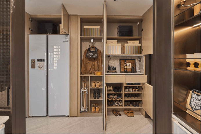 从5大收纳区的镂空玄关柜,到分类更细致的卫浴空间,再到厨房的5大分区,以及更惊喜的餐边柜,划分6大功能区,全屋收纳量飙升!