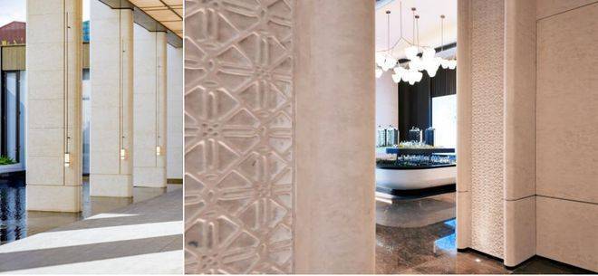 为宅定制:选用贝金米黄石材等奢材,结合非遗工艺与严苛交付标准