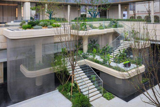 不夸张的说,看过无数个“下沉式庭园”,招商序仍然拿出了很有创意的设计想法,创新式打造4层悬浮式下沉园林,整个立体庭园,汲取了海派大师邬达克封笔之作「曾经的远东第一豪宅-吴宅」精髓,力求“宅、园、水、院”立体交融,借天地之景,纳四时之变,将人间春色凝于一园。