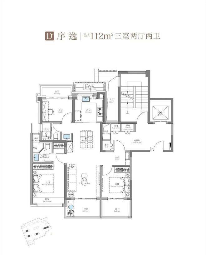建面约114㎡3房2卫户型