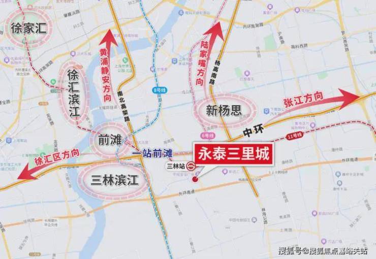 轨道交通方面:项目与11号线三林站直线距离仅约350米,步行可达,进站后1站即达前滩,2站即达徐汇滨江。
