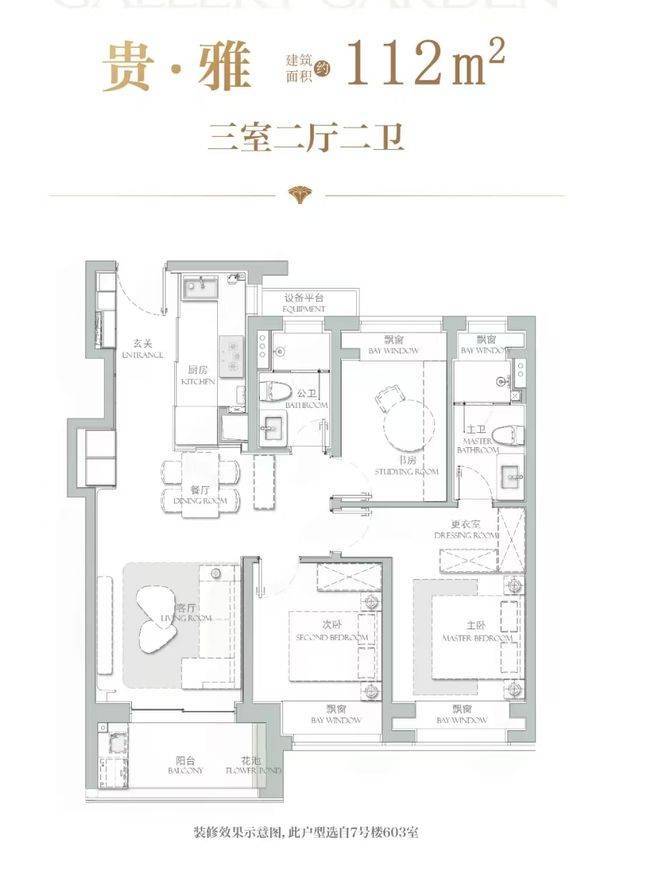 项目主力户型为建面约112-177㎡的三至四房大宅,采用精装交付标准,预计于2026年5月交付。主力户型采用LDKB一体化设计,南向双阳台,采光面宽达6.6米。177㎡四房更是打造了270°转角窗观景套房,让生活与自然无缝衔接。