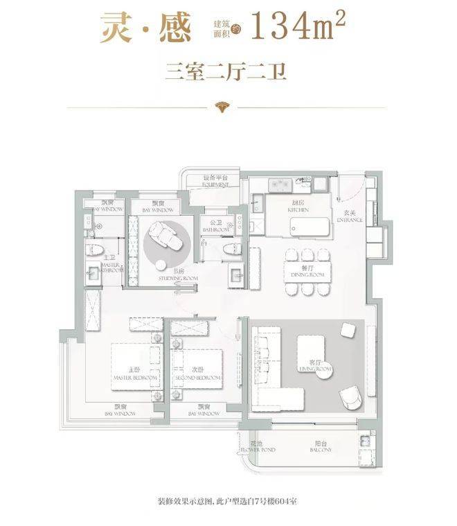 主力户型建面约112-177㎡,从三房到四房的阔绰空间,每一户都经过精心设计,兼顾了现代家庭的居住需求与对景观视野的最大化利用。特别是建面约177㎡的四房户型,总价约2300-2500万级,四开间朝南设计+双套房配置,保证了家庭成员起居的私密性。客餐厅尺度阔绰,方正大气,自带曲面流体阳台,主卧带转角飘窗与双台盆设计,尽显尊崇。标准层层高约3.15米,比常规户型多出约15cm,纵向尺度的延伸为室内释放出更多收纳空间。