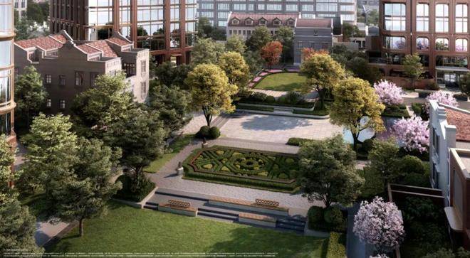 在寸土寸金的上海,更何况是新天地,壹号院社区配套约1.8万方海派花园,通过南北95米×东西60米的十字景观轴线,串联五大主题花园,重现核心板块难得一见的「集中式景观体验」,这才是放眼目前顶豪项目无法比敌的超级景观配套。景观理念上,更是海纳百川融贯古今,设计团队萃取凡尔赛宫苑、克鲁姆洛夫城堡花园等全球经典设计,将风貌区的街坊巷弄肌理与现代景观完美结合,打造了多层次的庭院式花园场景,呈现海纳百川兼容并包的景观特点。这种在历史风貌保护区实现的大尺度景观营造,于新天地板块乃至上海堪称孤品。