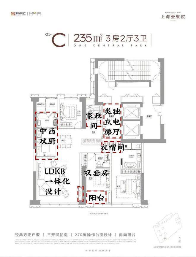此外,全系采用两梯两户设计,电梯为对开门,电梯厅空间完全私享!在户型设计上,其最大约15m南向三面宽、5大弧形全景舱、中西厨设计等,通过通透格局与开阔视角,将私密性与全景视觉体验完美结合,以创新形态重塑高端住宅的空间美学标杆!在豪宅产品力打造这件事上,上海壹号院可谓是不断突破创新;