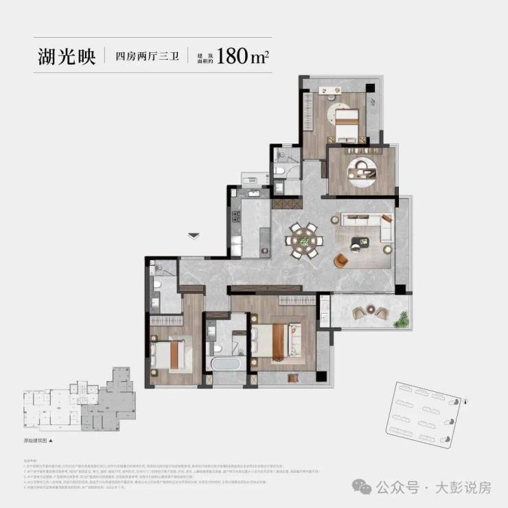 主卧270°飘窗设计,湖景采光、视野极佳,南向内卫设计,新颖实用;