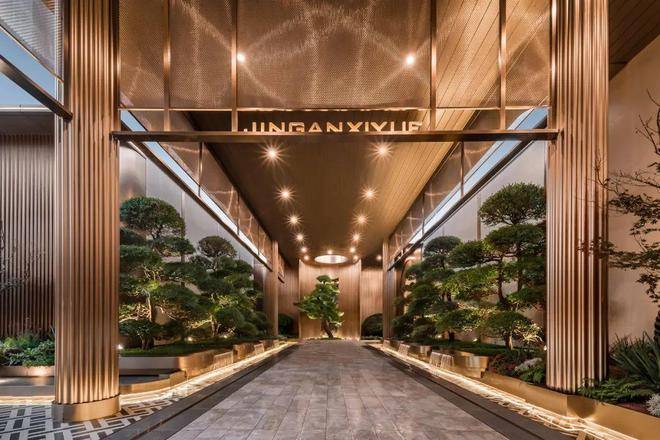 与常规社区的三重归家礼序不同的是,「静安玺樾」创造出升级版“四轴”归家体系:气派入口门楼,精致艺术的归家廊厅,全区花园式入户以及仪式水系轴线空间。让你从社区大门开始就能感受到身为业主的尊崇感~