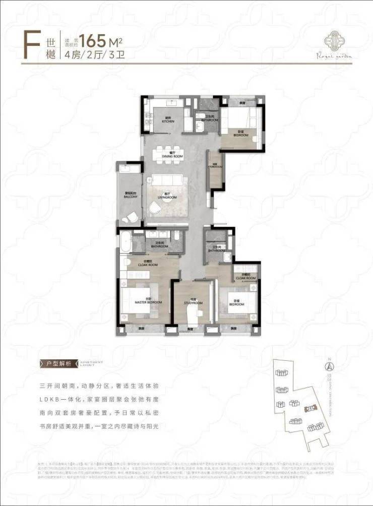 165㎡四房:横厅面宽超6米,主卧套房带衣帽间及观景飘窗,适合三代同堂。56