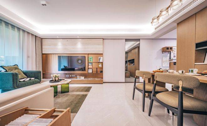新房可以完全按照自己的想法装修,住进全新的房子里感觉完全不同。比如案例中新房采用对比调来搭配,客餐厅的设计大胆新颖,显得十分高级。主卧室采用灰调设计,静谧清新;儿童房为了符合孩子天性,刷上蓝色艺术涂料提亮色彩。同时,阳台贯穿主卧及儿童房,保留通透空间,兼具生活及休闲功能。