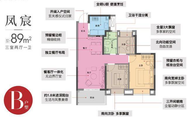 B1户型 | 3室2厅1卫 | 建筑面积约89㎡