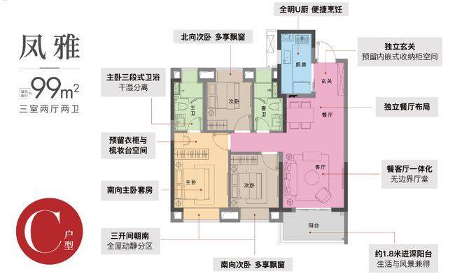 C1户型 | 3室2厅2卫 | 建筑面积约99㎡