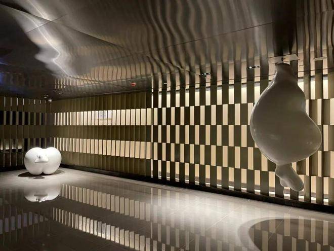 同时,大堂墙面全部采用定制弧面铝板,大理石拼花地面与整体大理石幕墙纵贯天地。