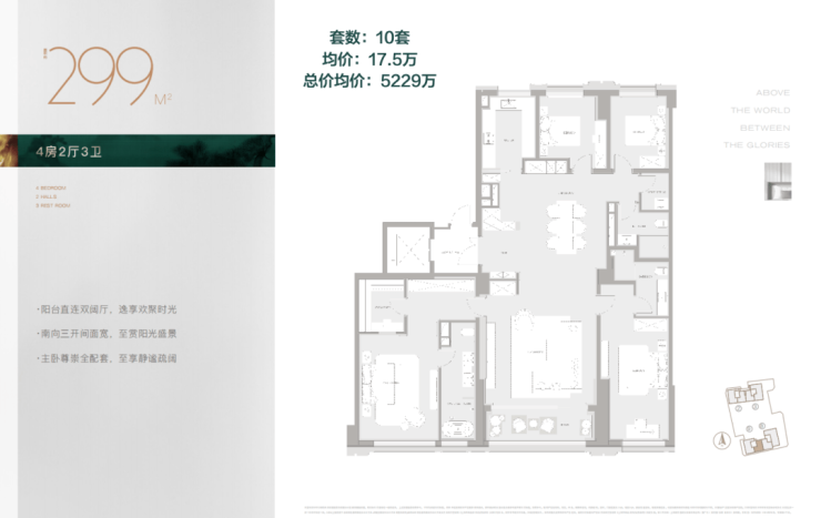 400㎡入门级大平层,采用全明通透布局,四开间朝南,客厅配备超大面宽落地窗,采光通风极佳;