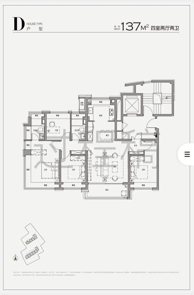 建面约137㎡的4房户型,在同等面积下实现了更精巧的功能布局,标配入户玄关,客餐厅、厨房、阳台一线贯通,家政间,通透感十足270°全景舱设计是项目一大亮点,部分户型通过北/南/西三向展开近36米连续玻璃幕墙,西南向无遮挡,城市与公园景一览无余