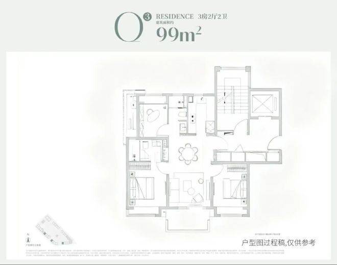 三开间朝南的飞机户型,搭配独立景观阳台,既保证了各卧室的私密性,又实现了优秀的南北通透效果,以舒适门槛即可抢占滨江价值高地,绝对是手慢无的热门之选。