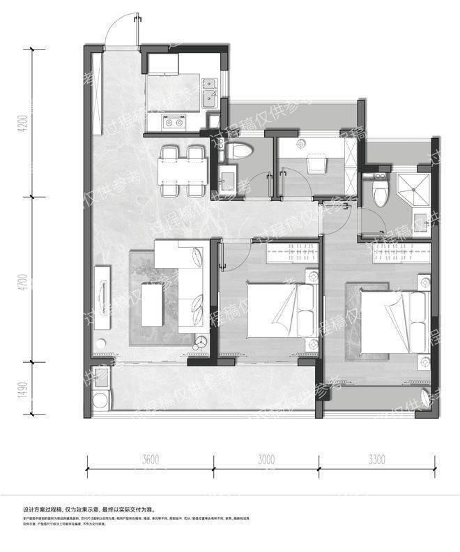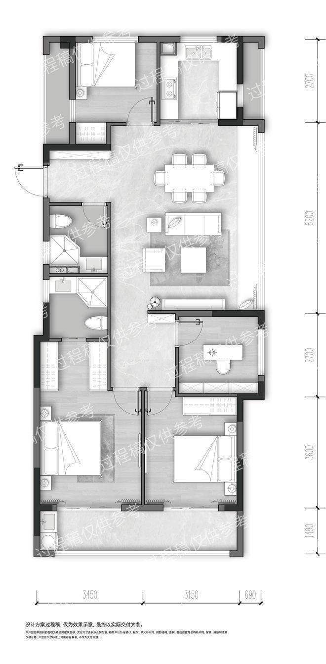 (琉翠轩建面约99方户型过程稿,仅供参考)