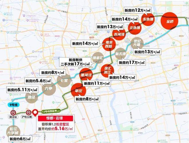 从全市格局来看,12号线可谓是上海的黄金线路,漕河泾、徐汇滨江、南京路、苏河湾、北外滩、东外滩均是上海寸土寸金的CBD,价格早已超过10万大关。而与项目相隔4站的莘庄(七莘路站)目前已经超过8万/㎡,相比之下容积率1.2的恒都·云璟完全能成为12号线沿线高精尖人群的改善置业目的地!
