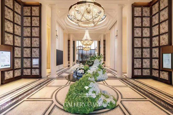 再仔细看细节,顶部香槟金色格栅塔冠以及壁柱采用香槟金和白色色调,将海派与现代之美生动演绎。