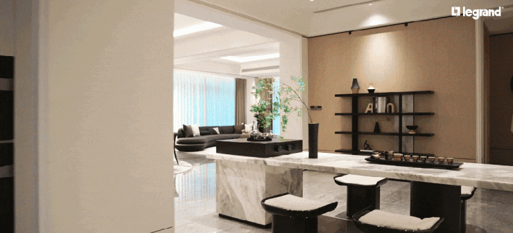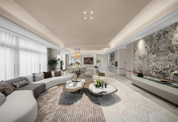 梁志天&上海世尊共同执笔:410㎡湾潮户型:WSD上海世尊团队执笔,以独一无二的“摩登东方”设计语言,抽象提取东方写意精神,与复古摩登、自由艺术平衡相融,领潮钱湾黄金时代。