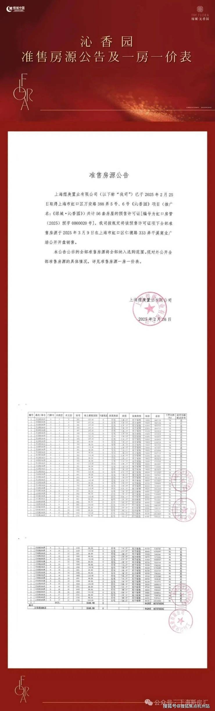 虹口·江湾「绿城·沁香园」三期60套建面约108㎡3房;均价85743元/㎡!