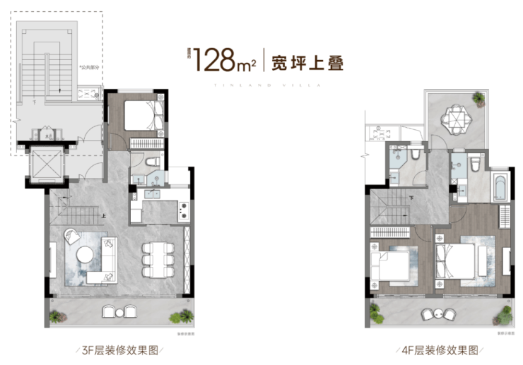 建面约128-140㎡的宽坪叠墅,以“无中叠、4F纯上下叠” 的创新格局,实现了市场罕有的一单元两户纯粹配置。这不仅意味着更高的得房率与私密性,更以独立入户互不干扰的设计,重新定义了苏州叠墅的标杆。