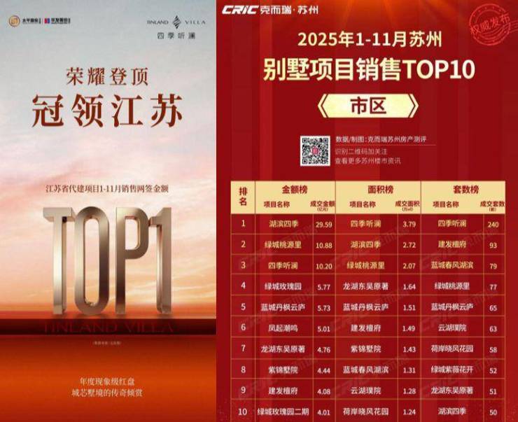 1、全省业绩巅峰:江苏省代建项目1-11月销售网签金额TOP1,省住宅项目1-11月销售网签金额前十,这超越了城市之争,是其卓越产品力和市场表现在全省语境下的最高认证。