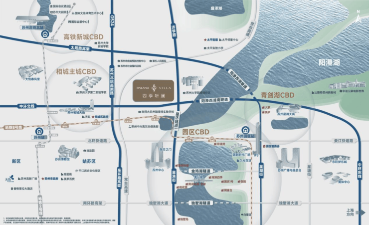 中环北线、太阳路高架、阳澄西湖隧道等城市动脉环伺,一脚油门直达园区湖东、苏州中心、相城核心。