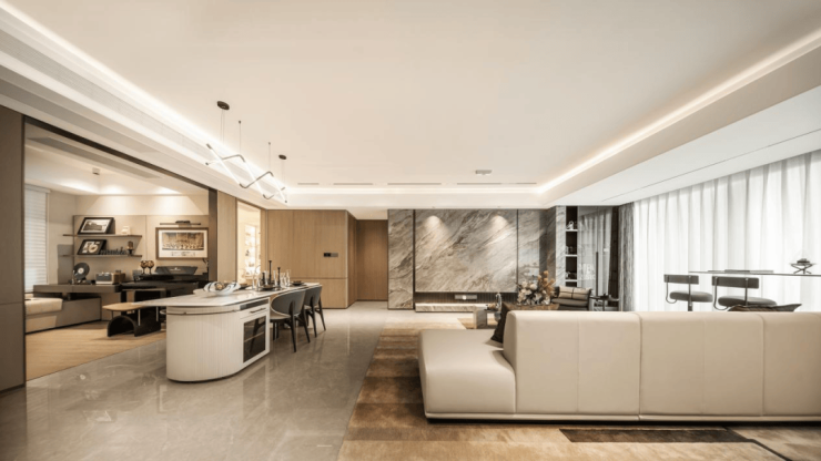 格局颠覆:采用经典的“四叶草” 零过道户型,实现空间零浪费。约8.7米双联阳台、约5.6米宽境方厅,与LDKB一体化社交公区相融合,通过流畅的洄游动线串联各功能空间,彻底打破传统壁垒,让家庭的互动与陪伴随时发生。
