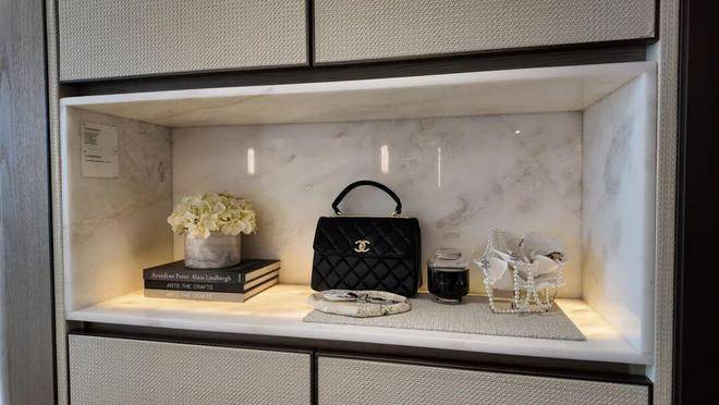 还有这个玄关柜的开放式收纳,四周一圈都是奢石,寻常项目也就一块奢石打底。