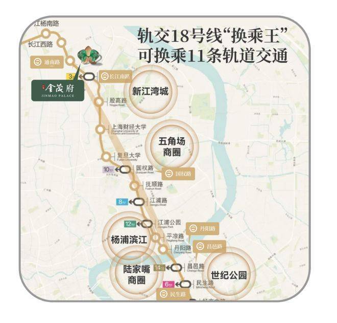 一方面是18号线“含金量”很高,3站财大,4站复旦,并经过杨浦滨江、陆家嘴等CBD,是科创、教育、金融产业高度集中的一条轨交线,而且18号线二期今年底即通车——在江湾金茂府交房前就能通车,大大缩减“需要等”的时间。