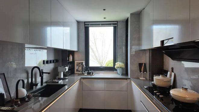 更贴心的是主卫美妆冰箱、“一镜到底”的镜柜、壁龛、厨房的“轻松抽”、餐边柜......收纳力MAX!不多拽文了,直接上对比,江湾金茂府3000元/㎡的装标实在多了