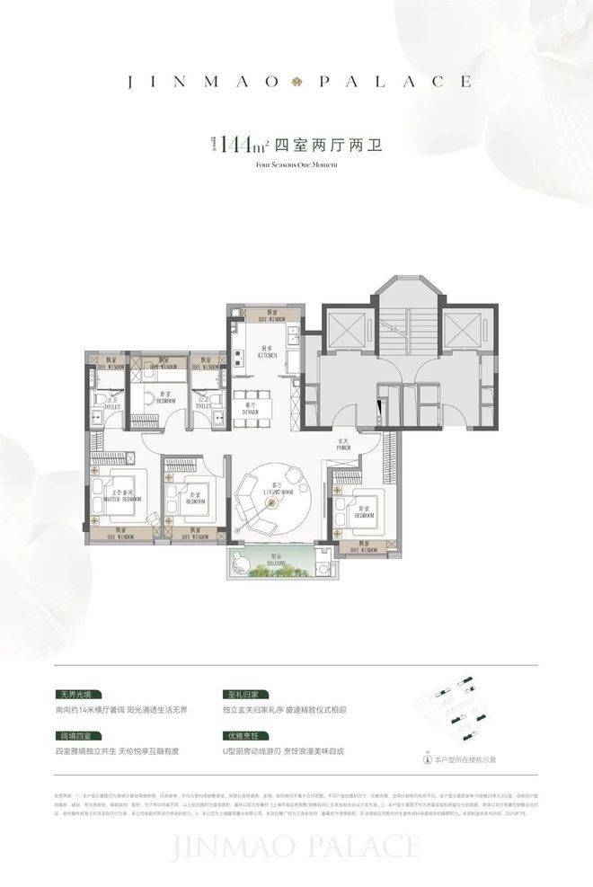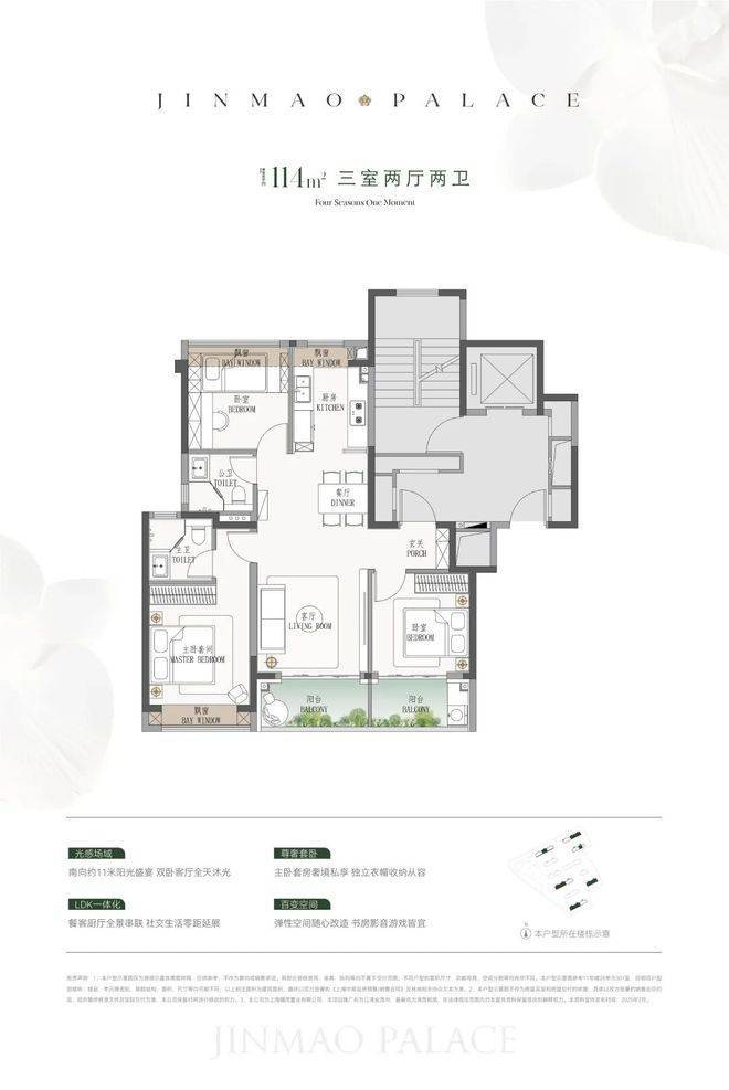 江湾金茂府的主力户型建面约114-144㎡3房4房,已经进化到next level了,刷新了我们对寻常户型的认知!